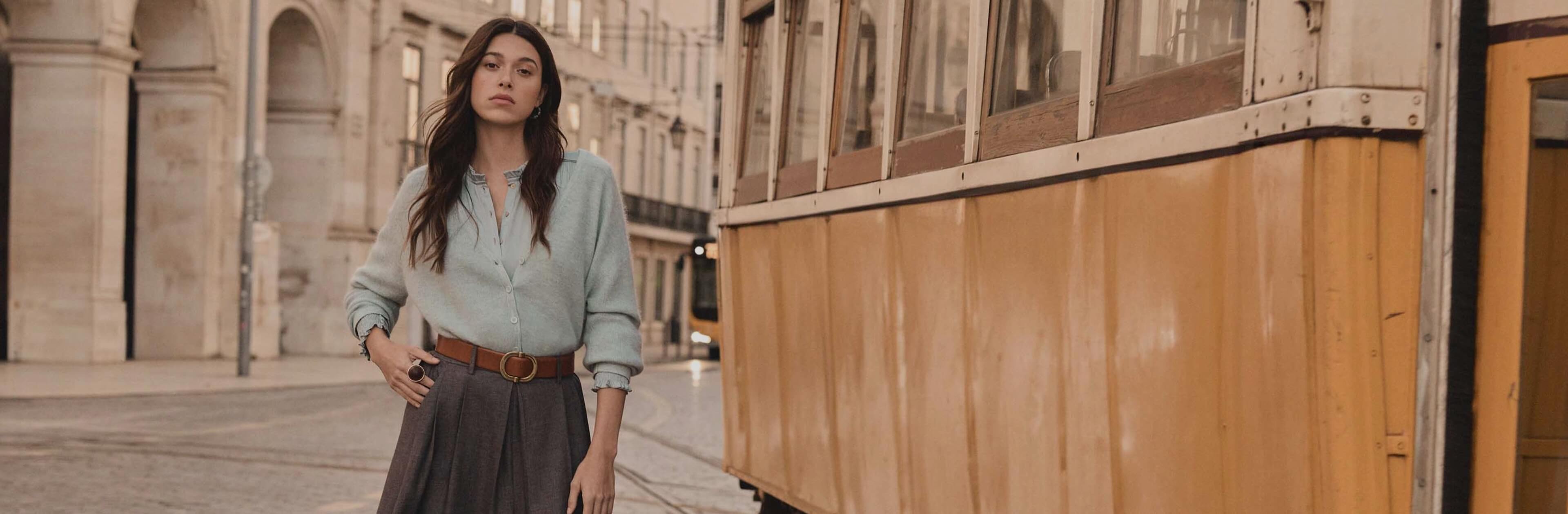 La jupe longue, délicatement bohème, est idéale pour élancer la silhouette à condition de choisir le bon modèle. Jetez votre dévolu sur une jupe fluide à la longueur mi-mollet et à la taille haute qui allonge visuellement la silhouette. Une jupe arborant une fente ou un boutonnage pouvant s’ouvrir est un plus car elle permettra de dévoiler vos jambes et de ne pas alourdir la silhouette. Si vous êtes petite, le choix des chaussures fera la différence : misez sur des bottes fines à talons pour vous élancer et vous offrir une allure longiligne. En haut, optez pour un top ou une maille que vous pourrez blouser dans la jupe pour conserver la taille haute et marquée visible.